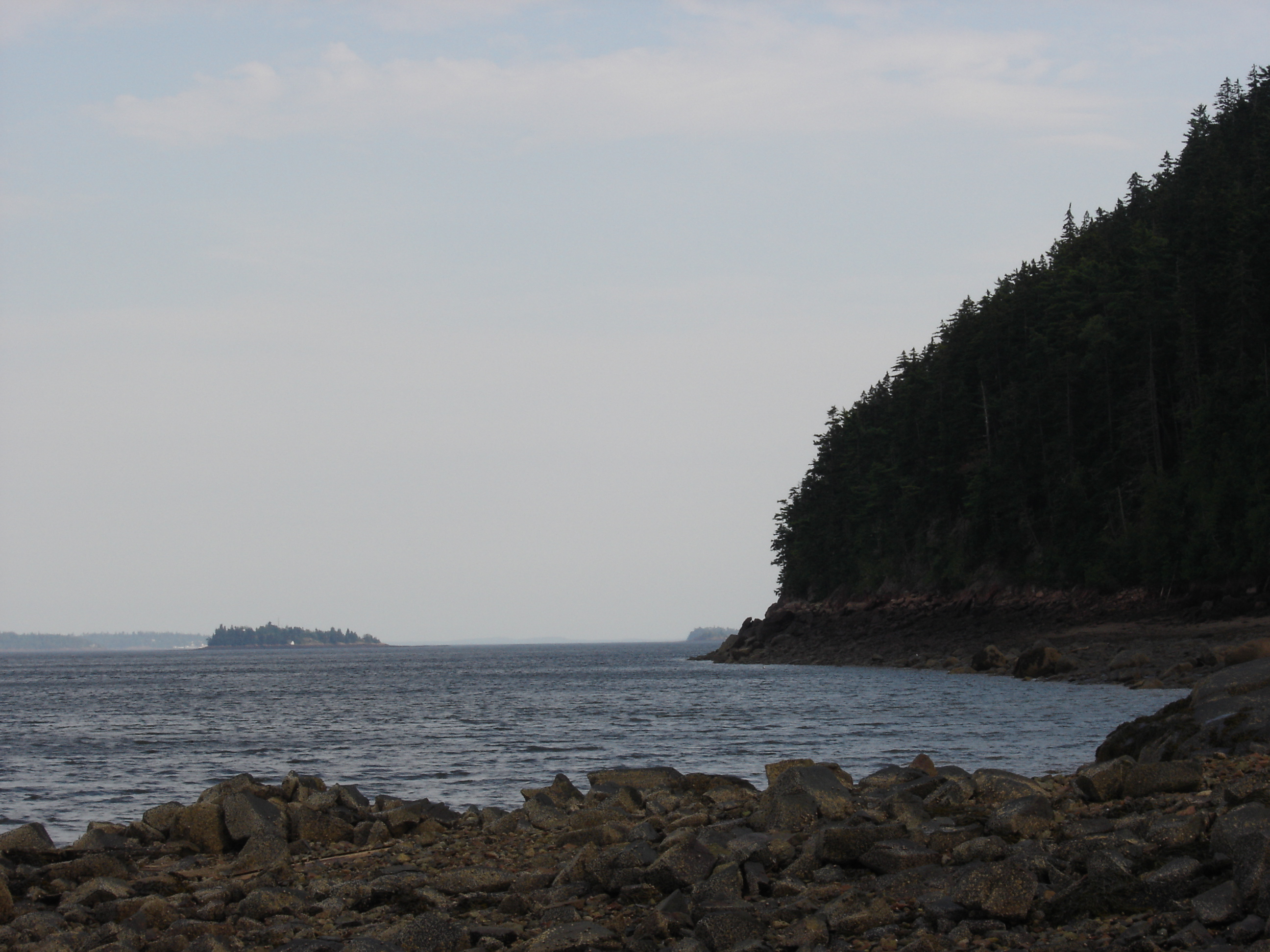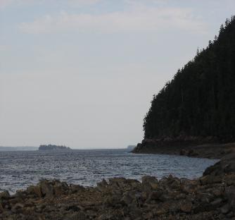 | DEVIL'S HEAD - 318 ' high headland on 340 acre international conservation area forms the easterm boundry of the Atlantica GreenSource land. View is looking down the St Croix River at St Croix Island (The international border of the United States & Canada) to Passamaquoddy Bay |