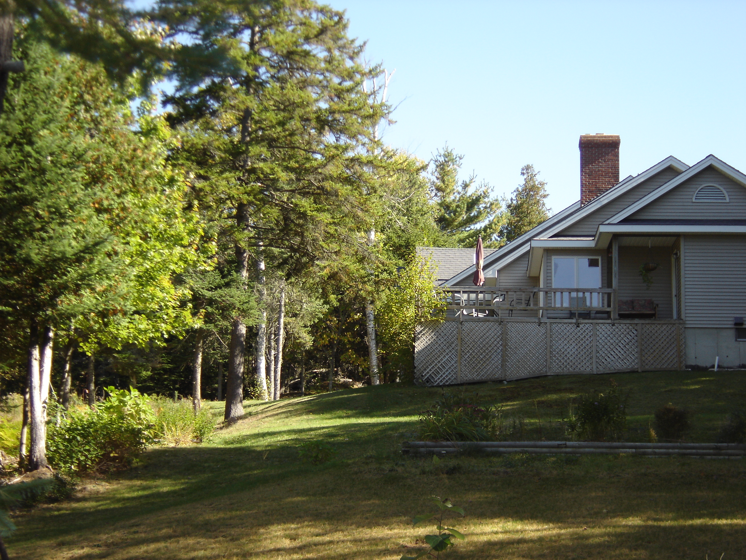 | The Field Looking north-west from the deck towards the "Picnic Grounds" in the field at the edge of the river where the Loons come to play. |